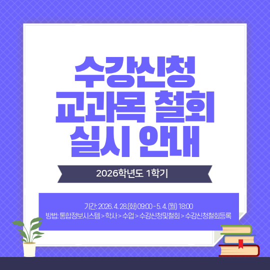 1. 기 간: 2026. 4. 28.(화) 09:00 ~ 5. 4.(월) 18:00※ 추가 기간 없음 2. 방 법: 학생...