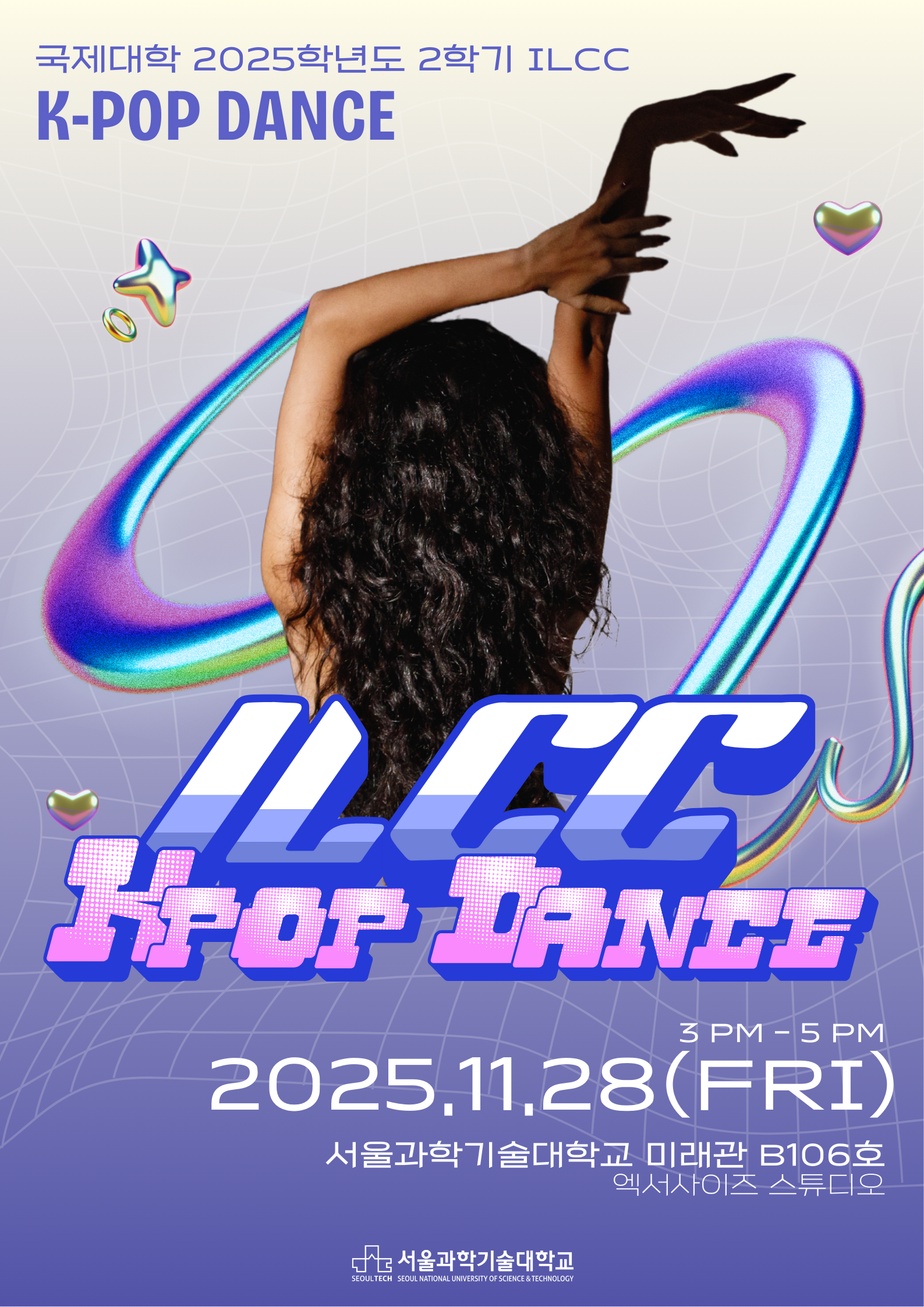 2025학년도 제 2차 ILCC에서는 'K-POP 댄스 체험'을 주제로, 발표자와 참석자 간의 자유로운 소통과 학술 정보 교류 및 지식 습득을 통한 외국인 유학생의 'K-POP' 및 'K-컬쳐'에 내재된 문화적 요소를 탐구하고자 하오니, 학생들의 많은 관심 바랍니다.