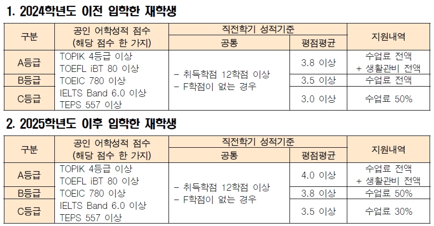 1. 제출대상: 외국인 특별전형으로 입학한 외국인 학부 재학생