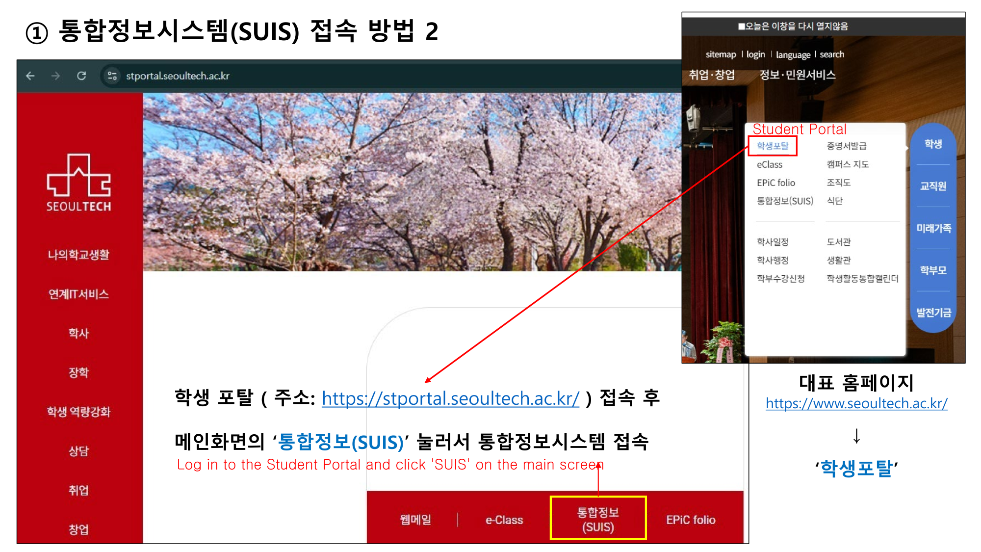 통합정보시스템(SUIS)에 접속하여 개인정보 현행화를 진행해 주시기 바랍니다.